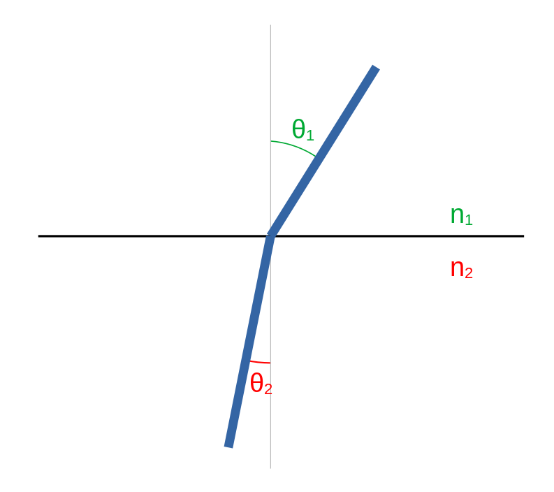 ¦ n1 sin θ1 = n2 sin θ2 ¦